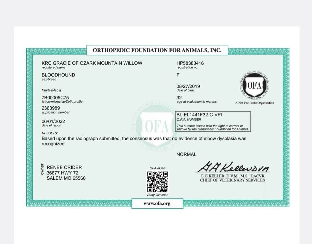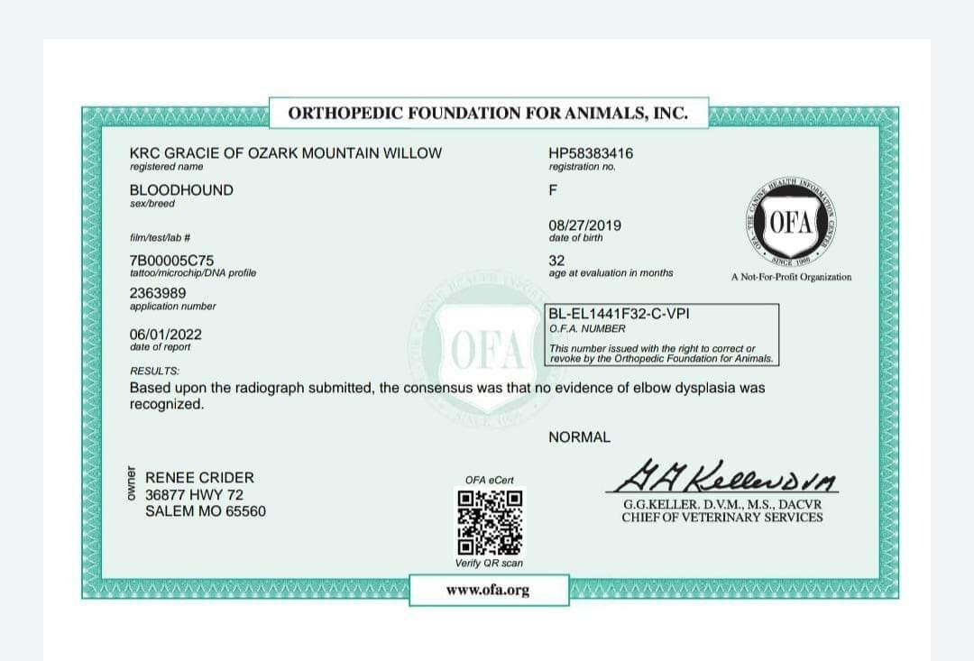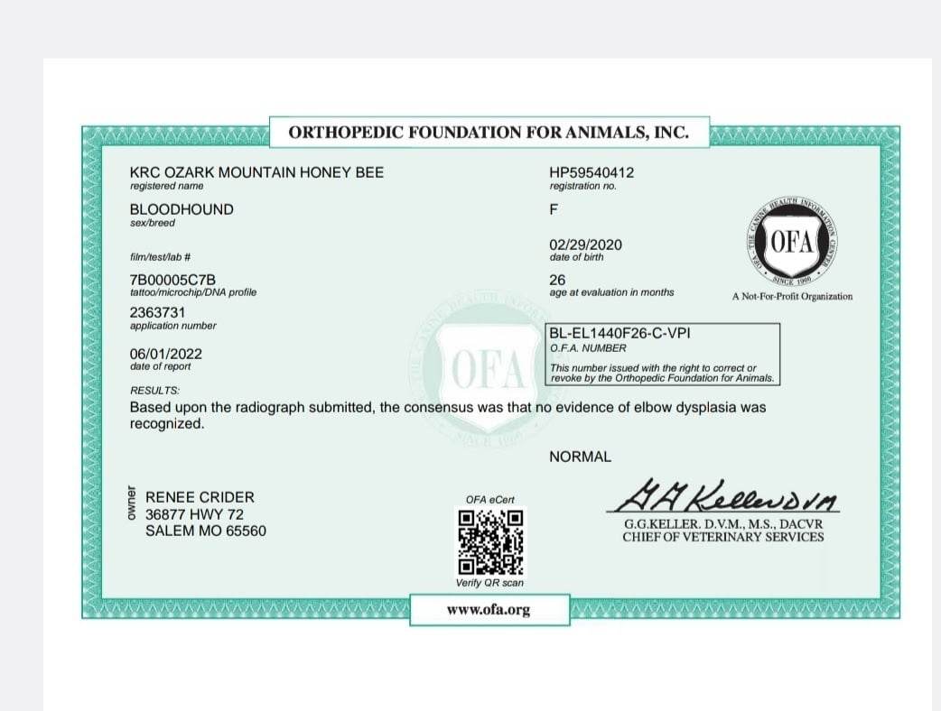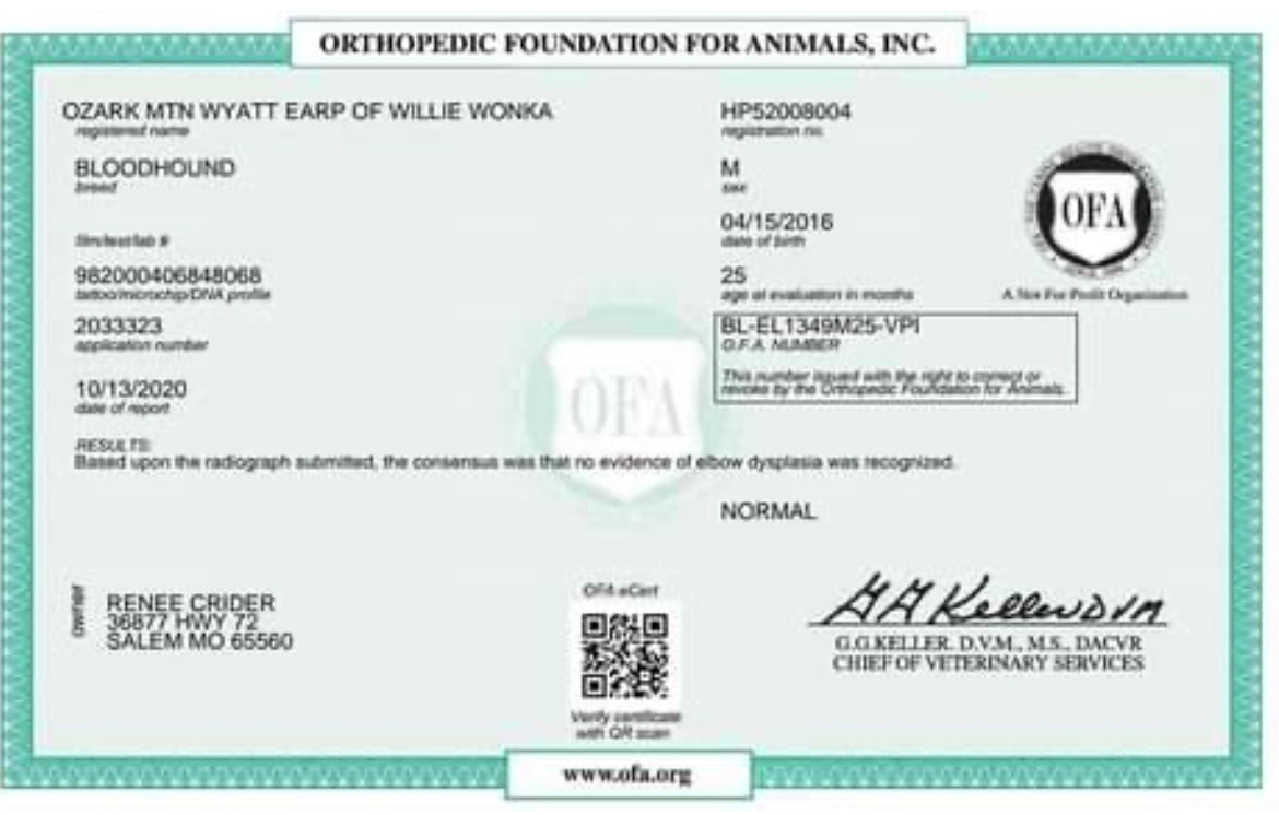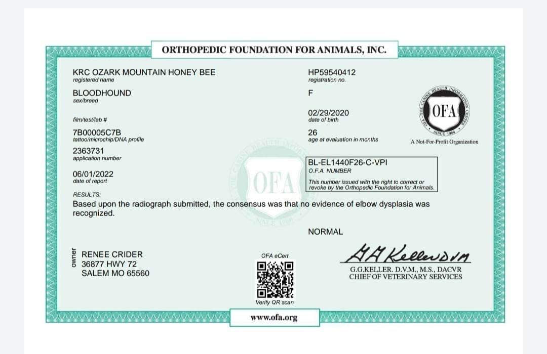 Elbow Dysplasia Finals (OFA, BVA, SV, FCI)