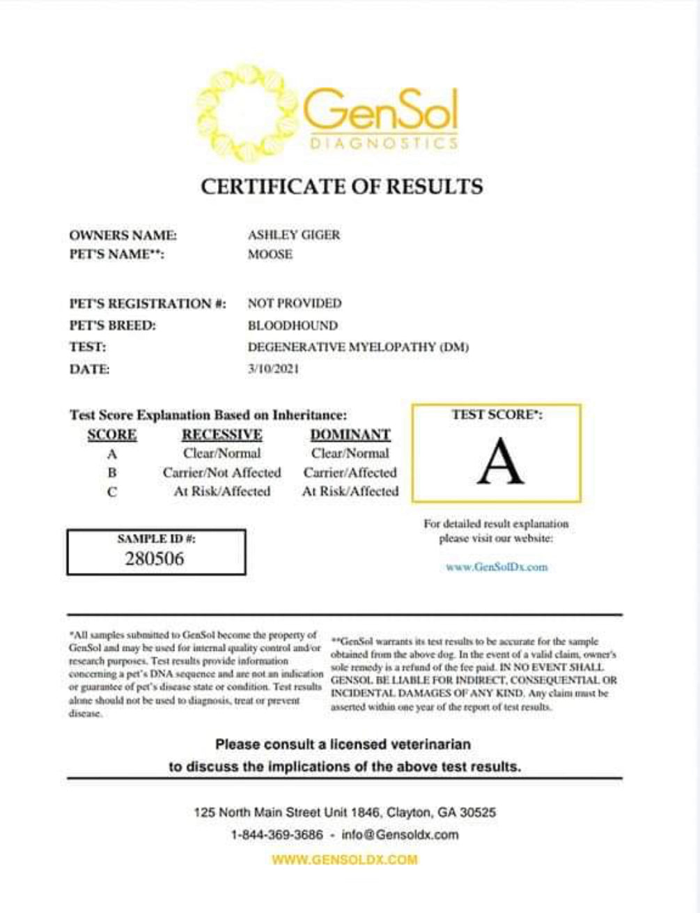 Degenerative Myelopathy (DM; SOD1B), Bernese Mountain Dog Type