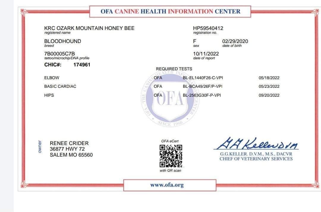 We offer a 1 year health guarantee. The health guarantee covers genetic disorders excluding eyes due common condition in bloodhounds.
